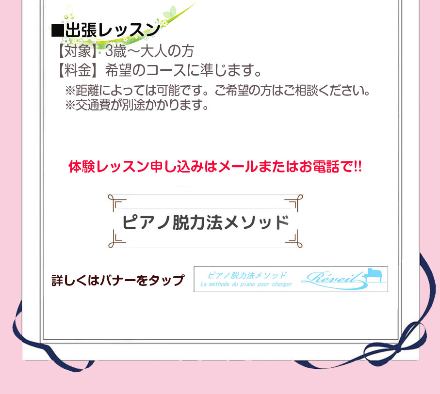 ![]() ※お電話が場合によっては繋がらないこともあります。その際は留守番電話にお名前とメッセージをお願いします。 |